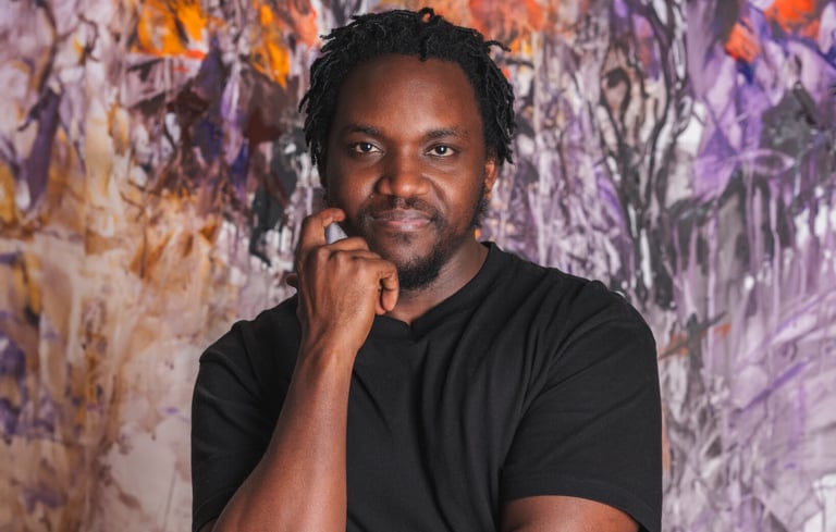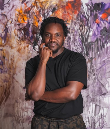 Der Künstler Mande aus Uganda malt, was für ihn SICHERHEIT bedeutet und spendet das Bild unserem Projekt!