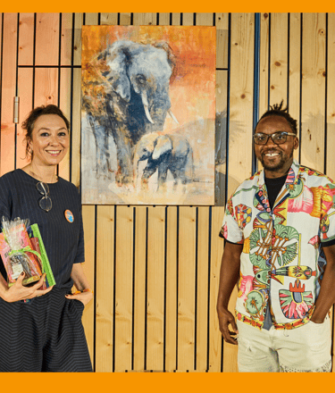 Schauspielerin Ursula Strauss mit Maler Mande bei unserer Orange the World Veranstaltung am 28. 11. 2025